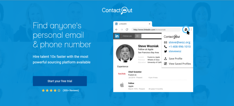 The Good: This is where I go when I’ve exhausted all other options and desperately need someone’s email. Essentially, ContactOut is a Chrome extension with access to 60% of all LinkedIn users’ profile information. If you verify your account, you’ll be given a few credits a day until the expiration of your free 30 day trial. Each credit will give you access to the information on anyone’s LinkedIn profile (personal email, phone number, etc.).